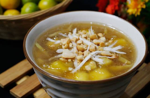 Tiếp theo, Tiệm Bánh Con Cáo sẽ tiếp tục giới thiệu cho các bạn một món rất là được ưa chuộng vào mùa đông luôn. Thử tưởng tượng mà xem: Trong cái lạnh của mùa Đông, còn gì tuyệt vời hơn khi có trên tay một bát chè ấm nóng, thơm phức mùi gừng nồng ấm, mùi đường hoa mai ngòn ngọt hòa quyện với nước cốt dừa béo ngậy,… Ôi thèm quá mà chịu nổi nhỉ !!! Chúng ta cùng bắt tay vào làm nhé