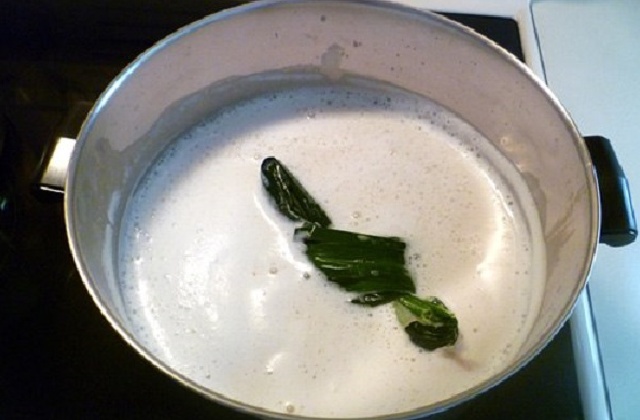 Bạn tiếp tục đổ sữa đậu nành đã vắt được vào trong một cái nồi to, đặt lên trên bếp rồi đun với mức lửa nhỏ. Vừa đun bạn vừa khuấy nhẹ và đều tay để sữa đậu nành không bị cháy ở phần dưới đáy nồi. Bạn đun đến khi thấy sữa trong nồi sôi lên thì bạn tắt bếp đi. Để sữa đậu nành thêm ngon hơn thì bạn có thể cho thêm vài cọng lá dứa khi sữa đậu nành bắt đầu sôi, sữa đậu nành sẽ có mùi thơm nhẹ của lá dứa cùng hương vị béo ngậy đầy chất dinh dưỡng.
